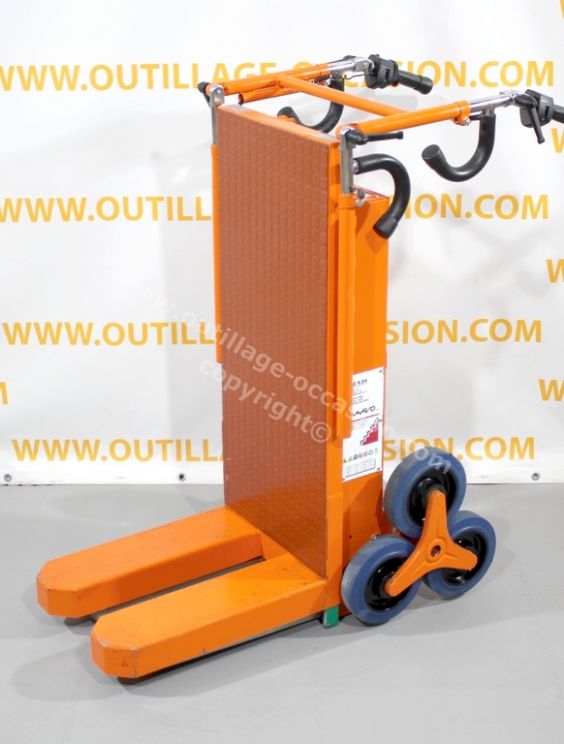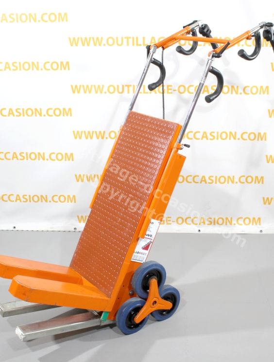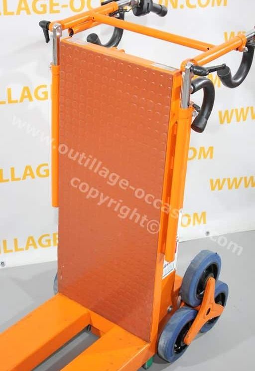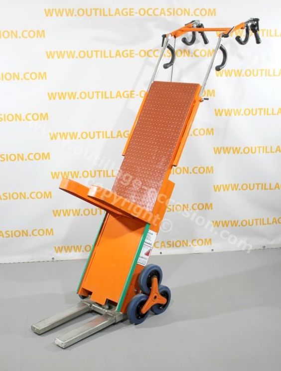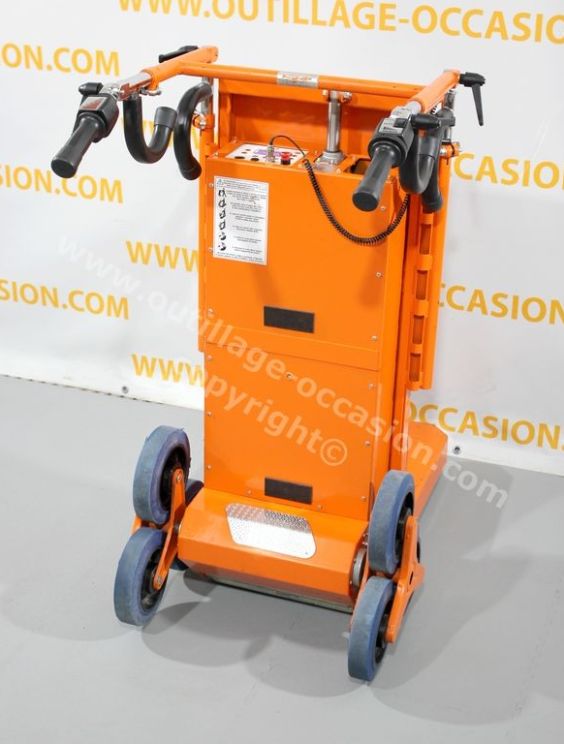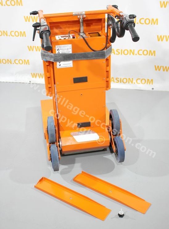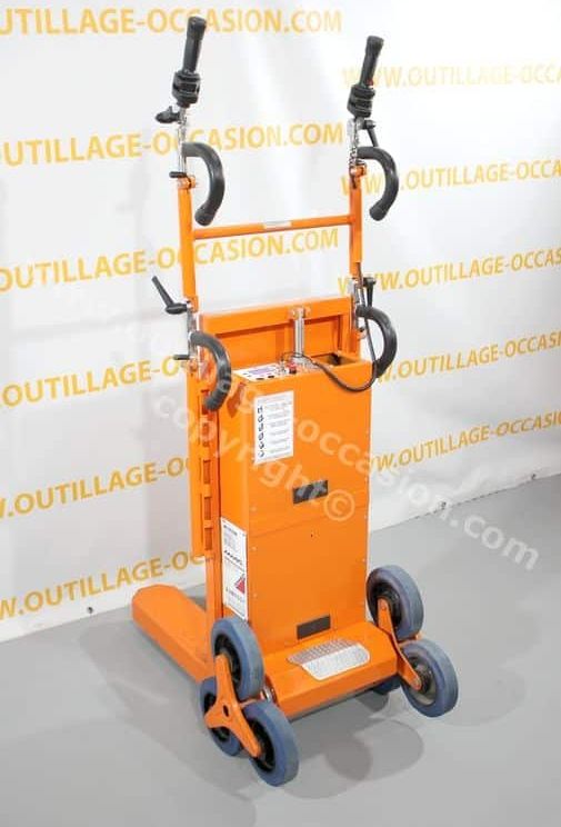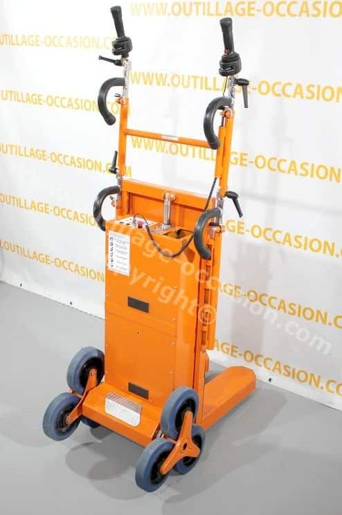 Diable monte-escalier électrique particulièrement étudié pour le transport de charges lourdes comme les cheminées, poêles et photocopieurs.