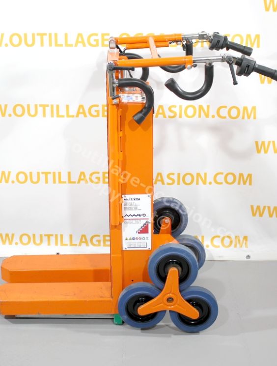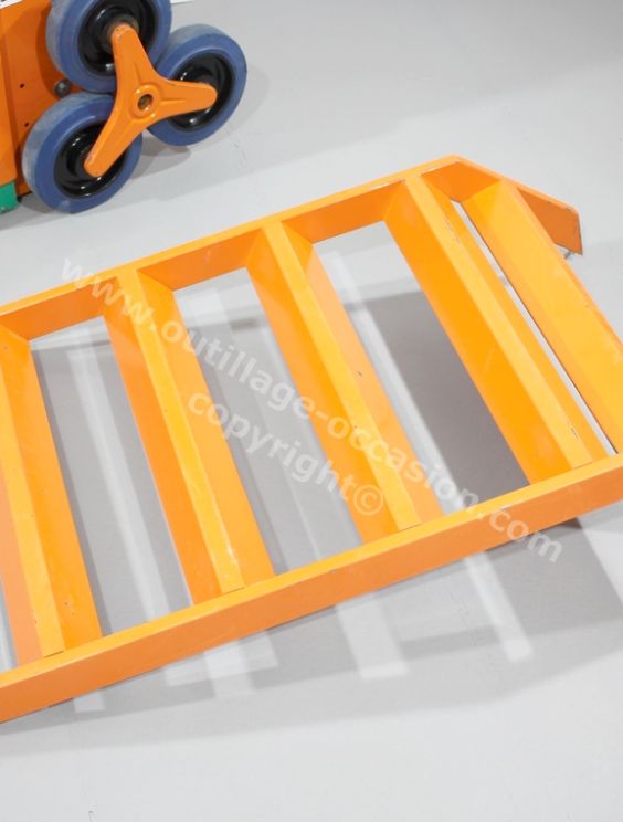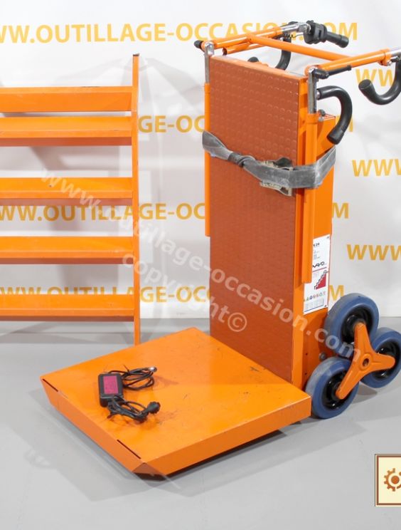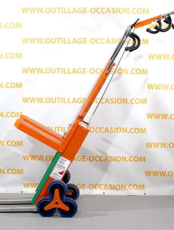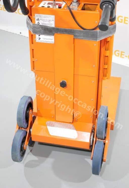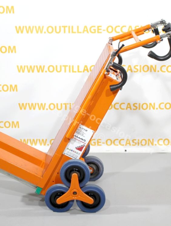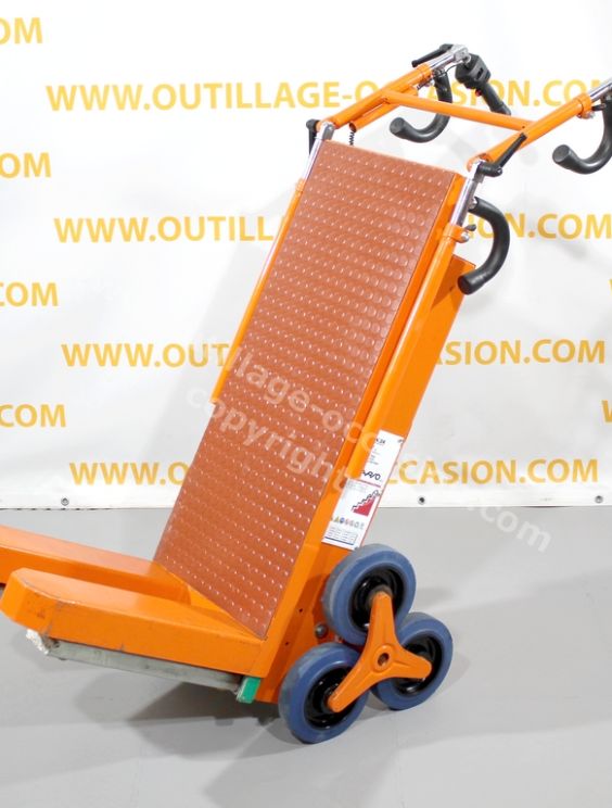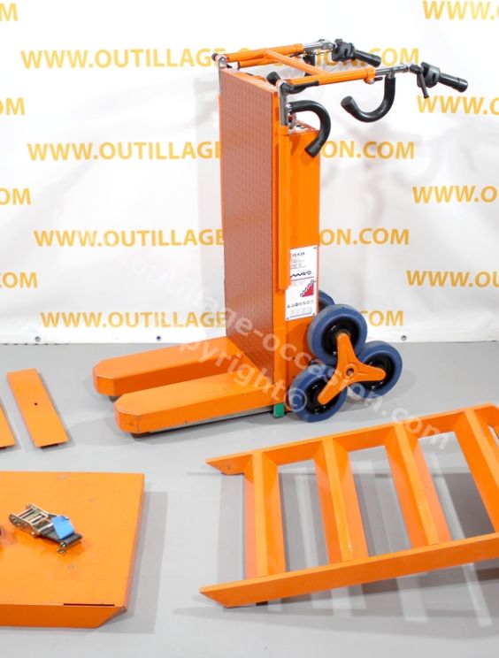 Diable monte-escalier électrique particulièrement étudié pour le transport de charges lourdes comme les cheminées, poêles et photocopieurs.