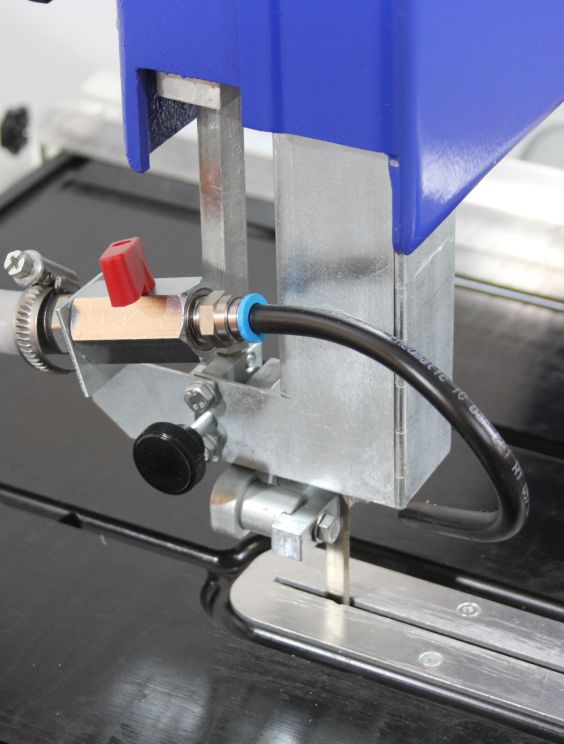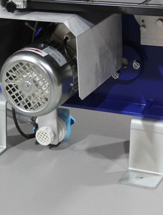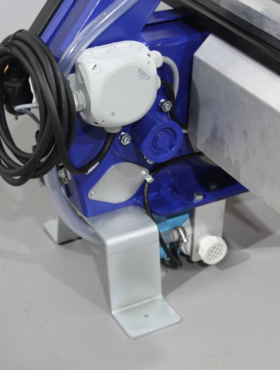 L’alimentation en eau vers le ruban de scie est assurée par une pompe à eau.