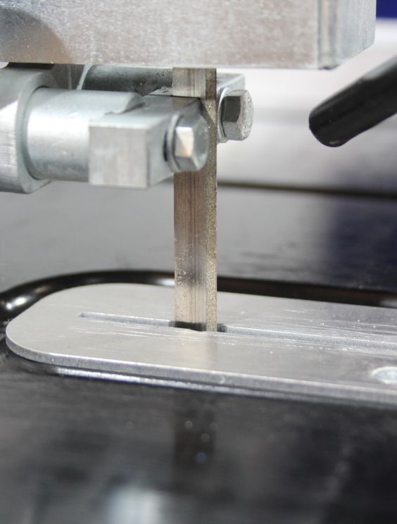 des éléments de guidage réglables maintiennent le ruban de scie dans sa position de travail pour des bords de coupe précis.