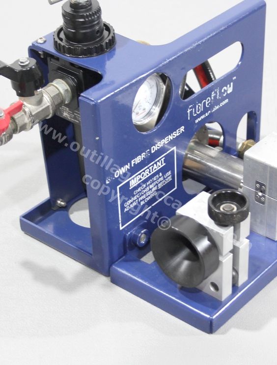La tête de soufflage 2A est fixée au distributeur pour permettre une installation sécurisée de la fibre dans le microconduit FiberFlow.